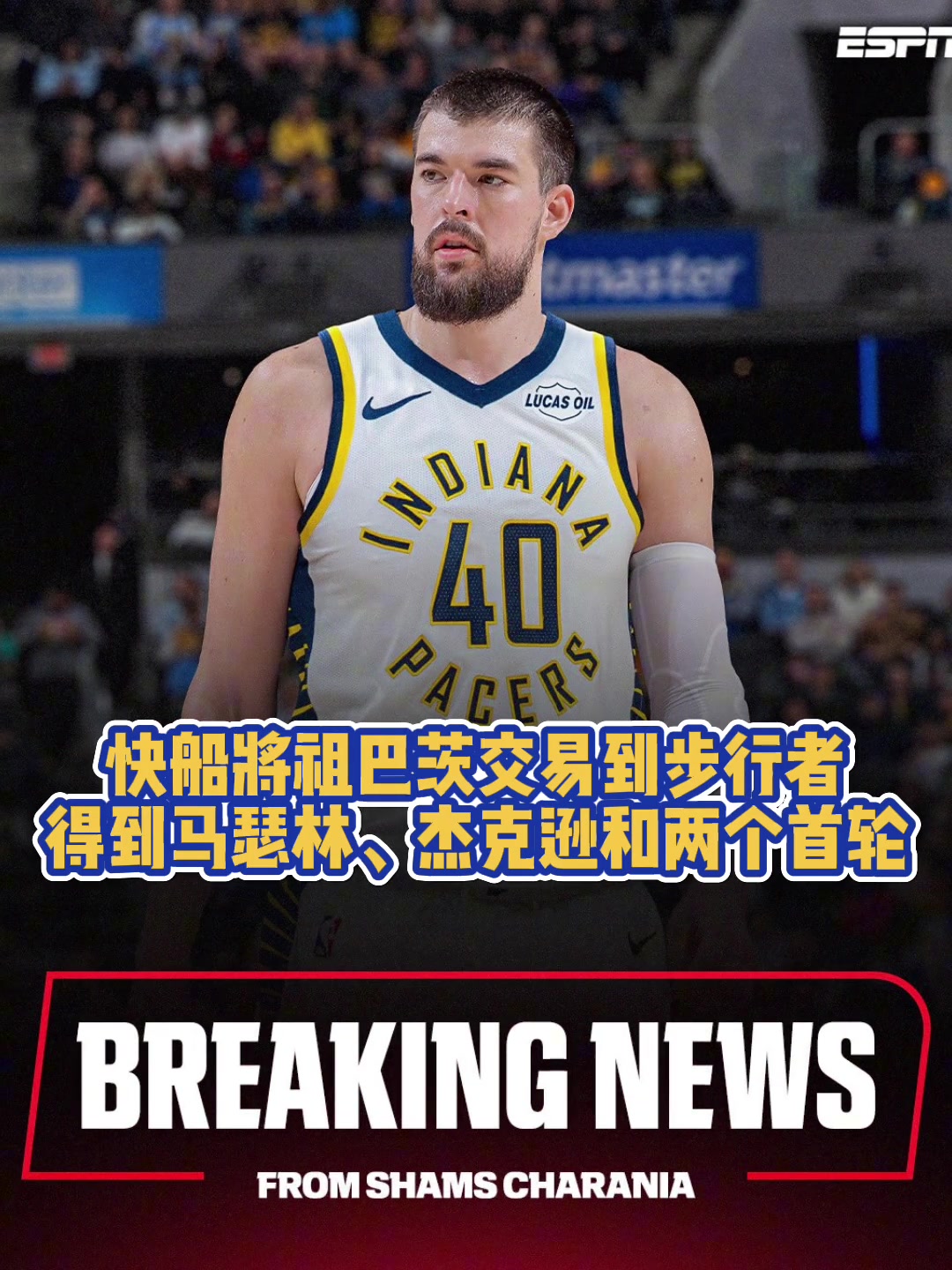 >快船将祖巴茨交易到步行者得到马瑟林、杰克逊和两个首轮...
