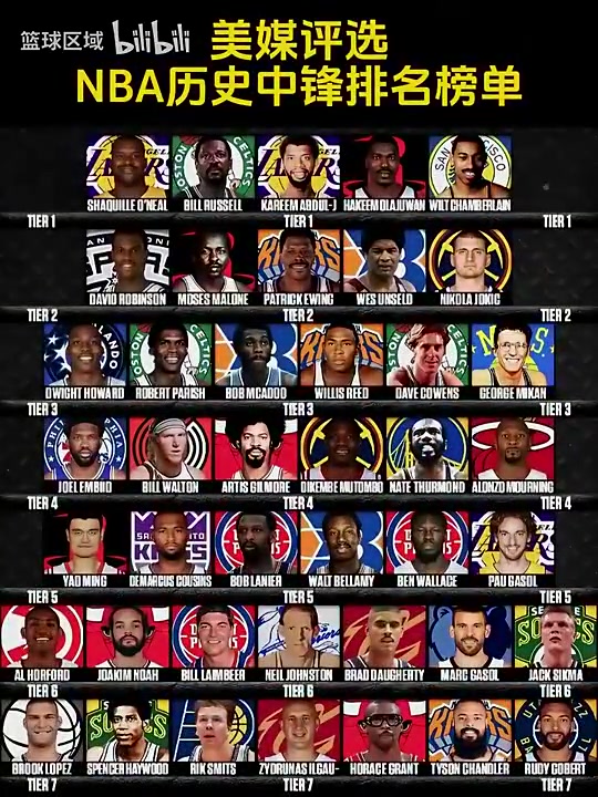 >谁高谁低?美媒晒图对NBA中锋进行分档:约基奇2挡,姚明5档