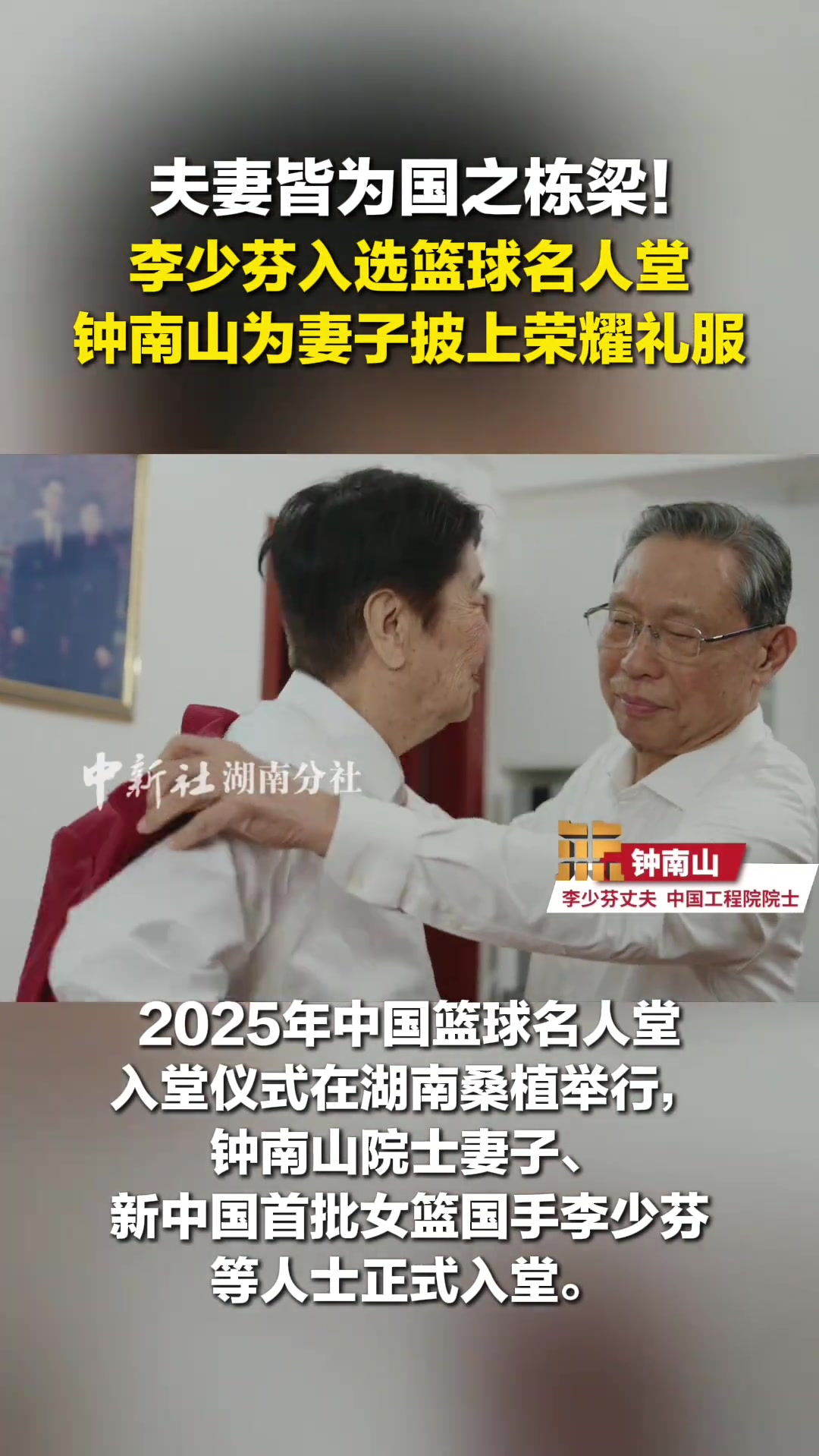 夫妻皆国之栋梁!李少芬入选篮球名人堂,钟南山为她披上荣耀礼服