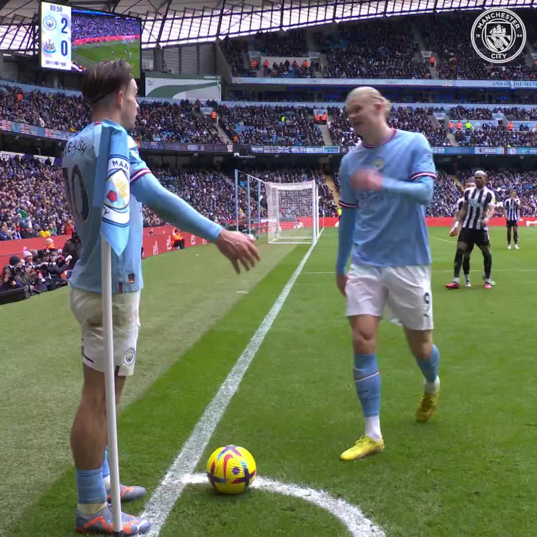 >曼城大战纽卡名场面:哈兰德对纽卡连续刷角球😂