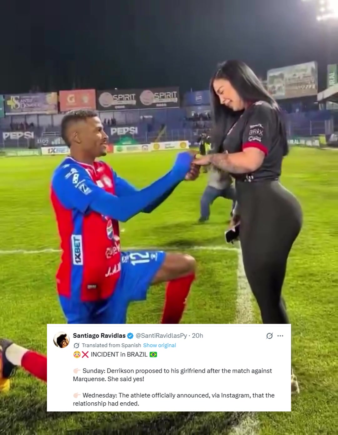 驾驭不住?巴西一球员星期天求婚成功,周三就分手🤣
