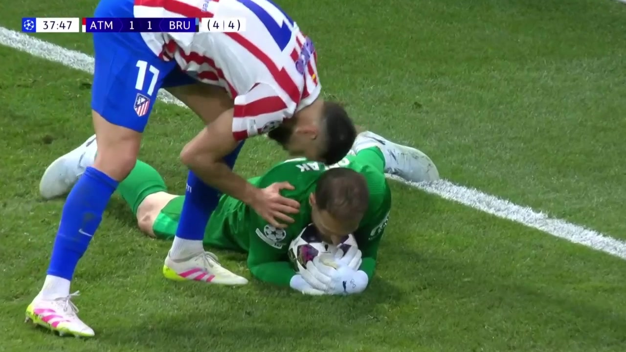 >马竞险遭反超!维特勒森头球攻门,奥布拉克反应神速神勇扑出